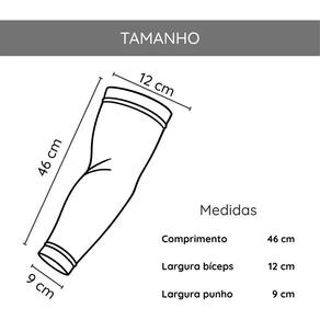 Tamanhos Disponíveis: P - Biceps:12 cm / Punho:9 cm / Comprimento: 46 cm