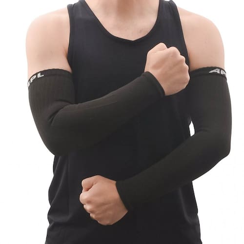Ajuste anatômico com compressão suave, cobre o antebraço e acima do cotovelo