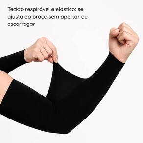 Conforto e ajuste ideal: Feito com tecido elástico, leve e respirável, o manguito se adapta a diferentes formatos de braço. Possui elásticos nas extremidades e entrada para os dedos, o que evita que a peça escorregue durante o uso.