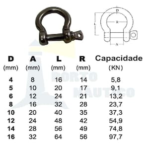 A manilha em aço inox balão possui pino de travamento reforçado e abertura para corrente de 5mm. Recomendado para conectar âncoras, correntes e cabos. Manilha balão ferradura em aço inox, com varios tamanhos diferentes de espessura, em aço inox 316, com pino especial.