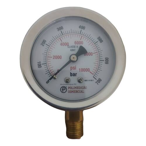 Manômetro Inox com Glicerina 63mm – 1/4" NPT | 0-700 BAR / 0-10.000 PSI
