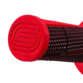 A área colorida, utiliza um material mais duro, que serve como estrutura da manopla. Já a área preta, com um composto mais macio, oferece o grip necessário para o melhor controle da moto.
