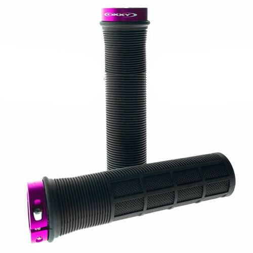 A principal vantagem da manopla Oxxy é seu sistema de trava, possui um anel de alumínio embutido na extremidade interna da manopla, que se encaixa perfeitamente no guidão da bicicleta.