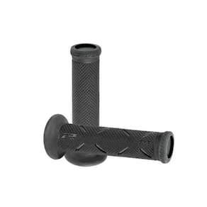 MANOPLAS PROGRIP SUPERBIKE PRETA COMPOSTO RIGIDO DURO (padrão de competição) As manoplas Pro Grip 717 rigidas são fabricadas com material de dupla densidade, proporcionando ótima aderência (mesmo na chuva) e conforto superior. Características principais: - Produto Italiano - Material: Borracha (COMPOSTO DURO - PARTE EXTERNA / Composto macio - parte interna) - Dimensões: 125 mm (comprimento), 30 mm (diâmetro externo) - Compatível com guidões de 22mm (diâmetro) - Manoplas vazadas para instalação dos pesos de guidão - Sulcos laterais para travamento com arame nao incluso (padrão de competição) - Vendido em pares Itens inclusos: -01 par de manoplas Codigo do produto: 1x PROGRIP-BLACK Ean: 7896484562997