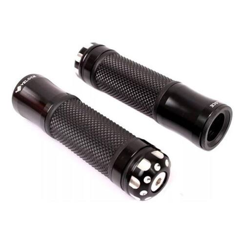 Manopla borracha antiderrapante; Acabamento em alumínio anodizado; Confortavel Peso na cor da manopla; Manopla 13cm Aplicação universal para guidão 22 mm 7/8; Core: preto