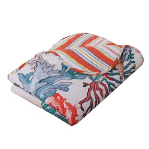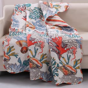 Cobertor acolchoado Benjara Wade 50 x 60 com preenchimento, design de corais e conchas marinhas, multicolorido