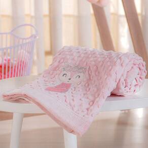 Características Gerais do Produto: - Antialérgico: Sim - Antialérgico: Sim - Composição: 100% Poliéster - Lavável em Máquina de Lavar?: Sim - Tamanho: Berço - Toque: Super Macio - Material: Poliéster - Plush: Sim - Com Sherpa: Não - Dupla Face: Não - Bordado: Sim - Gramatura: 180g/m - Cuidados com a Peça: Evitar produtos à base de Cloro; Evitar Secadora; Lavar separadamente de outros tipos de tecidos - Largura (cm): 70.00 - Comprimento (cm): 100.00 - Peso (g): 365.00