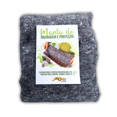 Características * Marca: All Garden * Tipo: Manta Geotêxtil para drenagem e proteção * Finalidade: Drenagem de vasos, floreiras, jardins, áreas verdes * Tamanho: 1m² (1m x 1m) * Material: Fibra geotêxtil sintética * Cor: Cinza escuro * Fácil aplicação: Pode ser cortada e adaptada a diferentes formatos * Reutilizável e durável * Embalagem contém: 1 unidade