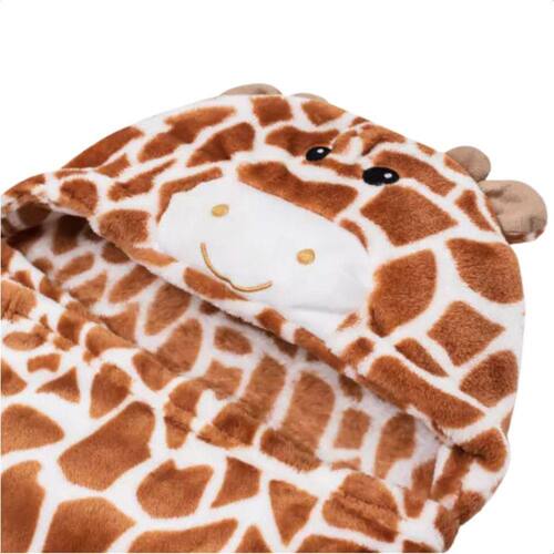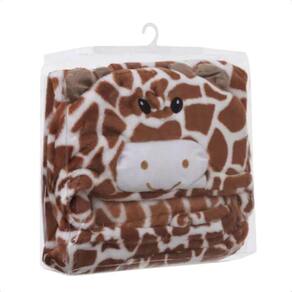 Manta Cobertor C/ Capuz Bordado Girafa Marrom Unissex