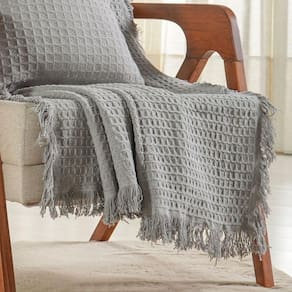 Manta Decorativa para Sofá Waffle 100% Algodão 160x220cm Platina -