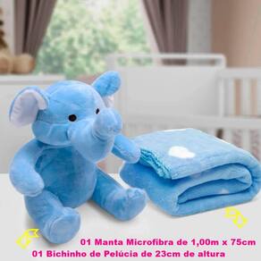 Manta E Bichinho Pelúcia Buettner Baby Microfibra Elefante Azul Kit Manta com Bichinho Bouton(Microfibra super Macia), em 100% poliéster. A manta possui tamanho de 100m x 75cm e acabamento em Ponto Crochê na Bainha, envolvendo e aquecendo, proporcionando ao bebê um soninho agradável. O Kit acompanha um lindo bichinho de pelúcia, com 23cm de altura, super macio e divertido. Manta e Bichinho Pelúcia Buettner Baby Microfibra Elefante Azul