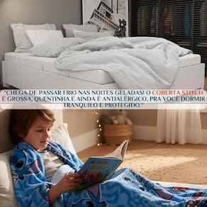 Manta infantil stitch super fofinha quentinha antialérgica Cor: stitch cool Deixe o descanso do seu pequeno mais aconchegante, divertido e protegido com a manta stitch Transforme o descanso do seu pequeno em um momento de conforto, diversão e proteção com a manta infantil stitch. Uma peça fofinha, quentinha e cheia de carinho que vai além de aquecer: ela traz segurança antialérgica e muito mais aconchego para o dia a dia. Seu filho a vai se apaixonar por essa manta com o personagem mais querido da disney. Imagine ver o sorriso no rostinho dele a ao se enrolar em uma manta super macia, quentinha e feita para proteger. É como dar um abraço carinhoso todos os dias, seja na hora do soninho, da tv ou até mesmo em viagens. Além de linda e divertida, ela transmite tranquilidade e bem-estar para as crianças, enquanto os pais ganham a certeza de oferecer o melhor em cuidado e qualidade. Garanta agora a manta infantil stitch e transforme os momentos de descanso em pura alegria e aconchego. Contém 1 peça 01 cobertor 2,20m x 1,50m Composição: Manta soft 1. A manta é realmente antialérgica Sim o tecido foi desenvolvido para ser hipoalergênico, protegendo a pele delicada das crianças. 2. Pode ser Utilizado em quais situações Perfeita para o berço, cama, sofá, viagens ou até para brincar e assistir tv. 3. A manta é pesada Não, ela é grossa e quentinha, mas leve o suficiente para oferecer conforto sem incomodar. 4. Pode ser lavada na máquina Sim, é prática e resistente, pode ser lavada na máquina sem perder maciez. 5. Qual o tamanho da manta Ela foi feita no tamanho ideal para crianças, oferecendo liberdade e aconchego. Não perca garanta agora a manta infantil stitch super fofinha e antialérgica e proporcione noites tranquilas e cheias de carinho para quem você mais ama. Marca: Não Informado Ean: 7794163741735