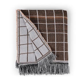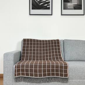 Manta Jacquard Misto com Franja 1,40 x 1,60 Grid Caramelo