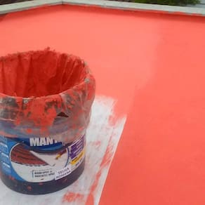 Preferencialmente inicie a impermeabilização da parte superior para a inferior do telhado.Aplique uma primeira demão em abundância da mantatec líquida pura diretamente no telhado, em abundancia com uma brocha ou pincel largo.
