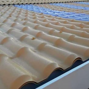 5 Aplicação do tecido estruturante bidim vp50 / mantatec vp50 Com a manta emborrachada úmida aplicada no telhado molde e cole o bidim vp50 ou a mantatec vp50 de acordo com o formato de sua telha, sem deixar nenhuma parte solta ou enrugada.