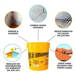 Flex turbo premium-enviamos o passo a passo da aplicação junto com a mercadoria.-emitimos nota fiscal-despachamos no mesmo diaBorracha flexível impermeabilizante tira infiltraçõesLajesMarquisesParedes com umidadeTelhas fibrocimentoTelhas barroTelhas de zincoTelhas galvanizadosA cor branca reduz em 30% o calorProporciona redução de barulho acústicoAproveite tudo de melhor que tem na borracha liquida flex turbo premium e tenha o mehor resultado + elasticidade e durabilidadeEle é um produto de fácil aplicação e do gosto dos profissionais que o aplicam.Facil aplicação.Desenvolvido para aguentar as maiores alterações climáticas como fortes chuvas, sol forte, ventos e baixas temperaturas.Ele é aplicável para eliminar infiltraçoes em...Lajes.Piscinas cimentadas com porosidadeTelhados de barro, concreto , brasilit, onduline, telhas de zinco, galvanizado, eternit.Caixas dágua (cisterna).Paredao externo e interno (muros ).Acompanha as dilatações do local onde aplicado, não apresentando trincas ou estrias na superfície, mesmo sob o sol.Impermeabiliza, protege contra batida de chuva, sela, pinta, elimina micro fissuras, repele agua, anti mofo.Permite assentamento de cerâmica diretamente sobre a borracha e com a borracha.Isolamento térmico e acústico - na cor branco reduz em até 30% a temperatura da superfície.Reduz ruídos causados pela chuva em telhados.Tem excelente elasticidade e excelente filme de memoria (quando esticada ela retoma. Marca: Flex Turbo Premium