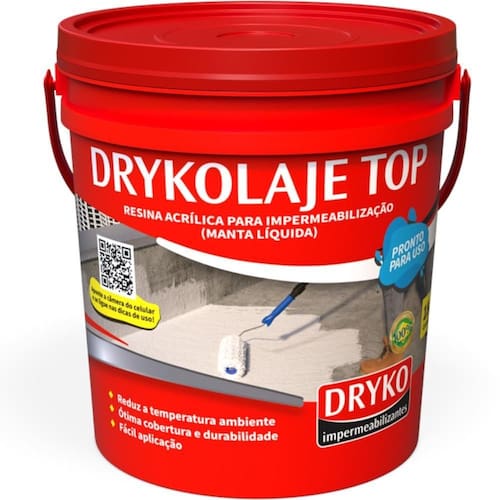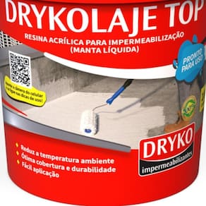 Produto: Manta líquida impermeabilizante para lajes 18kg - DRYKOLAJE TOP Marca: Dryko Descrição: A Manta líquida impermeabilizante para lajes 18kg - DRYKOLAJE TOP da Dryko é ideal para ser aplicada em lajes de cobertura sem trânsito de pessoas, pinturas refletivas em telhas de fibrocimento, proteção uv sobre o sistema de pintura asfáltica, sistema de pintura em fachada para jardim vertical. A DRYKOLAJE TOP é uma manta líquida à base de resina acrílica impermeabilizante com resistência aos raios UV, ozônio e a chuva direta com ótima cobertura de acabamento. Vantagens: • Pronto pra uso • Aplicação em forma de pintura • Produto atóxico • Alta durabilidade • Pode ser pigmentado.Especificações: Massa específica g/cm³ : 1,300 a 1,400Teor de sólidos % : 48 a 53Viscosidade krebs stormer Ku : 120 a 140Secagem entre demãos Horas : 2 a 3pH: mínimo 8Consumo: 1,0 a 1,2 kg/m2Acabamento: branco. Marca: Não Informado Ean: 7898692150690