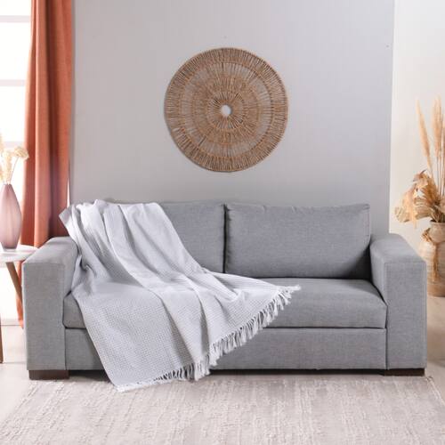 Manta Para Sofá Com Franja Grid 1 Peça 2,10m x 1,35m 60% Algodão / 40% Poliéster Tecido Jacquard