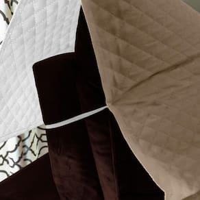 Nossas capas são confeccionadas com tecido superior e inferior em 100% microfibra poliéster, com enchimento em manta 100% poliéster, forro 100% impermeável e acabamento em viés de tecido. O modelo é produzido com um matelado ultrassônico, em formato de losangos, trazendo sofisticação, beleza e conforto ao seu sofá.