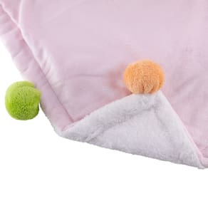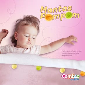 Conforto, carinho e cuidado para os bebês.A Manta Pompom Baby aquece confortavelmente as noites do seu bebê. Com acabamento e tecido de alta qualidade, a peça proporciona um toque altamente macio e suave.A manta é confeccionada em microfibra azul de um lado e branco do outro, super macia e com vários pompons coloridos. Complete a decoração do quarto do bebê com esta combinação de beleza e qualidade. CARACTERÍSTICAS- Confortável, fofinho e quentinho;- Sensação extremamente macia e aconchegante, ideal para noites de inverno;- Uma peça perfeita e criativa para deixar o quarto do bebê ainda mais especial e decorado;- Estampa e design desenvolvidos com muito carinho e sempre pensando no conforto dos bebês;- Antialérgico e confeccionado com tecido selecionado;- Diverte e ensina os bebês as cores, pois os pompons são coloridos. COMPOSIÇÃO/MATERIAL- Tipo de tecido: Microfibra;- Composição: Cem por cento Poliéster;- Gramatura: 460 g m/2. CUIDADOS- Lavagem a temperatura máxima de 40°;- Não deixe de molho;- Não alvejar;- Não usar máquina secadora;- Não limpar a seco;- Não deixar secar no sol;- Não usar ferro de passar roupas. DIMENSÕES DO PRODUTO (LxAxP)- 102 x 76 cm. DIMENSÕES (EMBALAGEM COM O PRODUTO) (LxAxP)- 27 x 26 x 12 cm. PESO (EMBALAGEM COM O PRODUTO)- 400 g. MODELO DE EMBALAGEM- Cabide para gancho com hang tang. A EMBALAGEM CONTÉM- 1 Manta pompom baby garota.