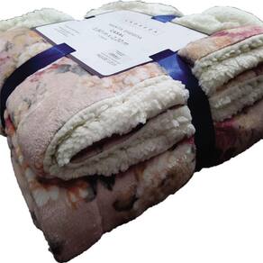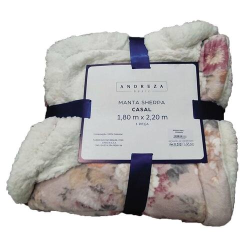 Manta Sherpa Casal Andreza Flores Rosa