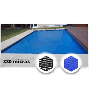 Especificações: Capa térmica para piscina atco 330 micras bolhas pretas e parte lisa azul A capa térmica para piscina é um produto especial para piscinas com ou sem sistema de aquecimento. Indicada para proteção e conservação da piscina, a capa possui um shape com bolhas redondas que aumentam o isolamento térmico, reduzindo em até 75% as perdas de calor em uma piscina aquecida. Para piscinas arredondadas a capa vai retangular, podendo ser ajustado com tesoura ou estilete no espelho da piscina O aquecimento proporciona a passagem de energia solar, esse calor é potencializado pela capa e serve como uma tampa para aquecer a água da piscina, pois a capa tem a função de uma camada isolante do calor aumentando a temperatura da água em até 8 °c, com isso os custos de aquecimento da piscina podem ser reduzidos em até 50 % . ======================================================================= Utilização e cuidados: E o lado liso voltado para cima; Não é preciso nenhum tipo de alvenaria; Manter o ph da água entre 7,2 e 7,8; Manter o residual de cloro livre entre 1,03 e 3,0 ppm; Em caso de tratamento de choque com cloro, remover a capa e retomar seu uso somente após a estabilização do nível ideal de cloro 1,0 a 3,0 ppm; Ao retirar a capa da piscina nunca deixe ao sol, mesmo por curtos períodos; Quando utilizar enrolador de capa para descobrir a piscina ,desloque -o para uma área de sombra ou cubra a capa com um protetor; Quando remover a capa, evite atrito das bolhas com as bordas da piscina