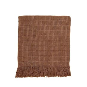 Manta Xale Rubi 1,70m X 1,40m Com Franja Para Sofá Cama 100% Algodão 01 Peça - Avelã
