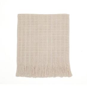Manta Xale Rubi 2,40m X 1,70m Com Franja Para Sofá Cama 100% Algodão 01 Peça - Marfim