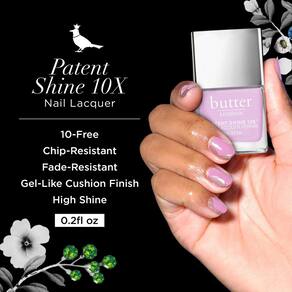 - Brilho patenteado: Proteja, suaviza e fortalece as unhas com cada camada de verniz butter LONDON Patent Shine 10X. Resistente a lascas e ao desbotamento com um acabamento deslumbrante de alto brilho semelhante a gel. Disponível em uma variedade de cores ousadas e vibrantes.