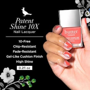 - Brilho patenteado: Proteja, suaviza e fortalece as unhas com cada camada de verniz butter LONDON Patent Shine 10X. Resistente a lascas e ao desbotamento com um acabamento deslumbrante de alto brilho semelhante a gel. Disponível em uma variedade de cores ousadas e vibrantes.