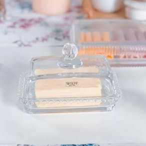 Apresentamos a Manteigueira de Cristal Pearl da Wolff, uma peça que une funcionalidade e elegância para transformar sua mesa em um espaço refinado e acolhedor.