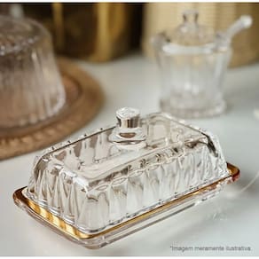 Manteigueira de Cristal com Tampa e Fio de Ouro Radial 18x10,5x8cm 220374 - Lyor - Dorémi Casa & Decor