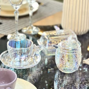 A Manteigueira Em Vidro Bee Rainbow Haüskraft adiciona um toque refinado à mesa, combinando elegância e funcionalidade para tornar cada refeição especial.