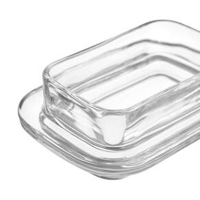 A manteigueira Glass é confeccionada em vidro transparente com 16,5 cm de comprimento, a tampa possui puxador arredondado que facilita o manuseio. A manteigueira Vista é a forma adequada de armazenar manteigas, pode ser inserida diretamente na geladeira, evitando a exposição do alimento. Na mesa, a manteigueira evita luz, ar e a temperatura ambiente direto no alimento, que podem prejudicá-lo.