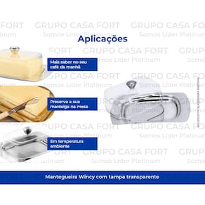 A Manteigueira Aço Inox Retangular Com Tampa De Acrílico Mesa é perfeita para armazenar e servir de forma prática e elegante. Feita em aço inoxidável de alta qualidade, ela não enferruja, é resistente a impactos e não solta resíduos nos alimentos, garantindo a segurança e a durabilidade do produto. Com a marca Wincy Casa, essa manteigueira possui tampa em acrílico transparente, que permite visualizar o conteúdo sem precisar abrir. Além disso, ela é ideal tanto para uso doméstico quanto para hotéis e pousadas. As dimensões da tampa são de 14cm x 10cm x 5cm, enquanto a bandeja possui medidas de 19cm x 13cm x 1cm. Com um peso aproximado de 150g, ela é leve e fácil de manusear. Essa manteigueira é perfeita para manter a fresca e protegida da contaminação externa. Com seu design moderno e sofisticado, ela também é um item decorativo para a sua mesa. Imagens meramente ilustrativas. Pode haver pequenas alterações de tonalidade de cor devido ao lote de fabricação. Garanta já a sua Manteigueira Aço Inox Retangular Com Tampa De Acrílico Mesa e tenha praticidade e estilo na sua cozinha.