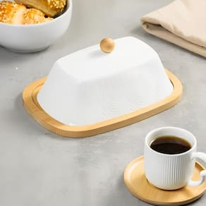 Informações Adicionais: - Marca: Hauskraft - Coleção: Oasis - Validade: Indeterminada - Tamanho Aproximado: 9 x 21 x 15cm - Peso Aproximado: 0,555G - Tipo de Produto: Manteigueira Oásis de Cerâmica - Cor : Branco / Natural - Composição: Cerâmica / Bambu - Pacote Contém: 1 Unidade - Garantia: 90 dias contra defeito de fabricação - Observação: As cores dos produtos podem sofrer variações em função da características do monitor e do ambiente durante a visualização.