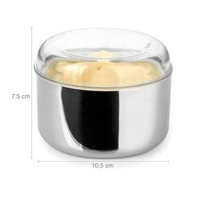 Manteigueira Para Pote 380g Porta Manteiga Inox Redonda Com Tampa Vision Forma #Manteigueira de Inox Forma #Porta Manteiga #Linha Vision Garantia: 90 dias / Peso: 142g / Cores: Inox e transparente / Ref: 800138 Dimensões: 10,5cm (D) x 7,5cm (A) Dimensões da tampa de acrílico: 10,5cm (D) x 2cm (A) Dimensões da base de inox: 10,5cm (D) x 5,5cm (A) Limpeza e cuidados: - Use apenas sabão ou detergente e uma esponja macia. Outros tipos de produto como palha de aço, poderão riscar ou prejudicar o brilho da peça; - Após a lavagem, enxugue imediatamente a peça, caso contrário, as substâncias químicas da água (cloro) poderão causar manchas. Contém: - 01 Manteigueira de Inox. Materiais: - Aço Inox: base; - Acrílico: tampa. A manteigueira com tampa da Forma irá proporcionar a temperatura correta e uma condição ideal para o seu consumo e de sua família, conservando da melhor maneira o seu produto. Além disso, este porta manteiga de inox preserva sua consistência e mantém higiênico após o uso, podendo utilizá-las para margarina ou geleias.