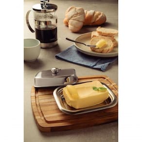 No seu café da manhã ou no seu chá da tarde, conte com a manteigueira retangular da linha Rotonda! Feito em aço inoxidável, tem alta durabilidade e garante a qualidade e o aroma da na hora da sua refeição. Brilhosa e com detalhes foscos, o utensílio pode ser lavado na máquina de lavar louças, e proporciona o aroma e o sabor sem nenhuma alteração de seu alimento.