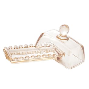 Manteigueira Wolff Pearl de Cristal Âmbar 14cm x 9cm x 8cm
