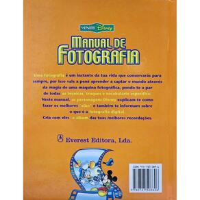 RESUMO Manual de Fotografia combina ensino prático com ilustrações encantadoras da Disney para levar o leitor ao universo da fotografia de maneira simples e eficaz. O livro aborda noções de enquadramento, ângulo, luz e uso de câmeras digitais, tudo ilustrado com exemplos divertidos. Ideal para iniciantes que desejam aprender e registrar memórias com qualidade e criatividade.