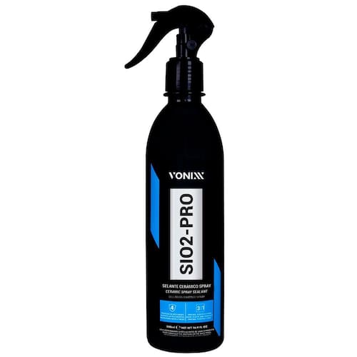 Em virtude disso, desenvolvemos SiO2-PRO, um produto exclusivo, desenvolvido especialmente para manutenção de superfícies tratadas por vitrificadores. O produto poderá ser utilizado a cada 30 ou 45 dias na manutenção de superfícies que foram tratadas com V-Plastic (plásticos), V-light (faróis e lanternas) e V-Paint (pintura). Sua formulação balanceada, contém silanos e siloxanos de cadeia longa, que são polímeros derivados do elemento químico silício. Essa composição, promove uma incrível hidrorrepelencia, e melhora significativamente o acabamento dessas superfícies. O produto deixa um toque aveludado e reduz consideravelmente o coeficiente de atrito, diminuindo as chances de riscos nessas superfícies, além de prolongar a vida útil das superfícies vitrificadas.