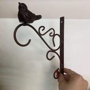 Fabricado em ferro resistente com pintura marrom, o suporte oferece durabilidade e combina facilmente com áreas externas e internas.