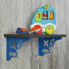 Mãos Francesas de Força para Prateleira 20cm Menino Carro Foguete Avião Azul Aço Zarg.