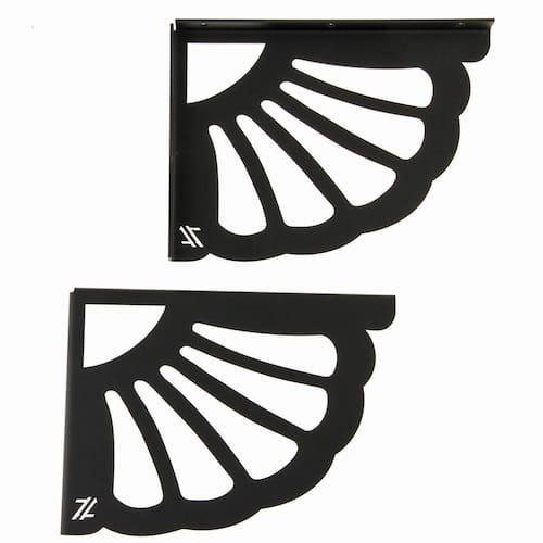 Mãos Francesas de Prateleira 20cm Flor de Leque Preta Aço Decorativa Zarg.
