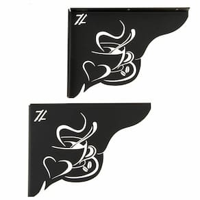 Par de Mãos Francesas Decorativas 20cm para Prateleira Cantinho do Café Coração Preto em Aço Zarg.