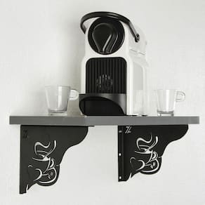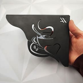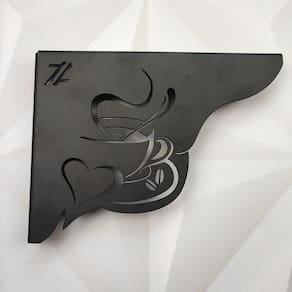 O café é uma bebida apreciada em todo o mundo, sendo conhecida principalmente pelo seu poder estimulante. Como bons amantes do café nada melhor que expor essa paixão em seu cantinho do café, com as mãos francesas decorativas com desenho de café. A mão francesa preta é ideal para prateleiras e deixa tudo ao seu alcance. Com 2mm de espessura, pintura premium epóxi na cor preta e aguentando uma carga de até 20kg esta mão francesa industrial preta tem contemporaneidade em sua composição.