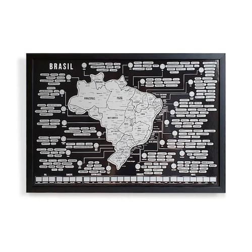 Mapa Do Brasil Raspadinha Grande Com Moldura Preta 73X50 Já vai com moldura, pronto para pendurar : Como funciona Esse mapa é perfeito para pessoas que adoram viajar. Conforme você viaja, vai raspando os lugares que visitou e o mapa vai ficando colorido : 200 principais lugares / praias do país. Não é possível colocarmos todos os pontos turísticos do Brasil devido ao espaço físico do mapa . Por isso, muito provavelmente alguns pontos você não encontrará. Então raspe o estado que visitou : Características: Fabricação própria, produto exclusivo, 100% feito no brasil. Após raspado, os países ficam coloridos. Todos os nomes em português. Tamanho total: 73x50cm. Já vai emoldurado. Mapa é colado no fundo, evitando de sair ou enrugar. Moldura de qualidade, 100% lisa, livre de imperfeições. Acompanha pendurador. Ean: 7908290172229