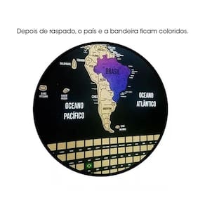 Mapa Mundi De Raspar Com Bandeiras.Como funcionaEsse mapa é perfeito para pessoas que adoram viajar. Conforme você viaja, vai raspando os países que visitou e o mapa vai ficando colorido : Características:Fabricação própria, produto EXCLUSIVO, 100% feito no Brasil.Após raspado, os países ficam coloridos.Todos os nomes em PORTUGUÊS.Tamanho total: 73x50cm.Já vai emoldurado.Mapa é colado no fundo, evitando de sair ou enrugar.Moldura de qualidade, 100% lisa, livre de imperfeições.Acompanha pendurador. Marca: Mondura Online