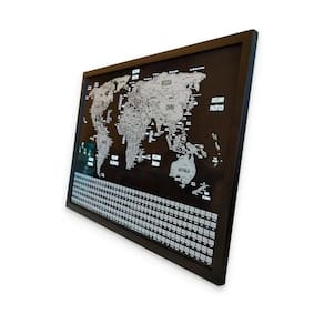 Características: Fabricação própria, produto exclusivo, 100% feito no brasil. Após raspado, os países ficam coloridos. Todos os nomes em português. Tamanho total: 73x50cm. Já vai emoldurado. Mapa é colado no fundo, evitando de sair ou enrugar. Moldura de madeira 100% pinus.