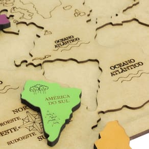 Principais características:Mapa múndi educativo em MDFDivisão por cores conforme os continentesPeças para montar e desmontarEstimula conhecimento geográfico e percepção espacialAuxilia no desenvolvimento motor e cognitivoCertificado pelo INMETRO